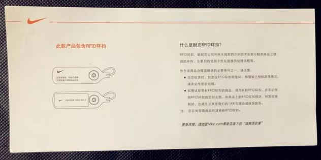 近年假冒偽劣商品泛濫,為防止自家商品被假冒充斥網絡,以及惡意調包退貨,Nike推出了帶有RFID芯片的防盜扣,以此加強監管,并獲得成效(上海市公安局破獲涉案金額巨大的假鞋退貨案)。