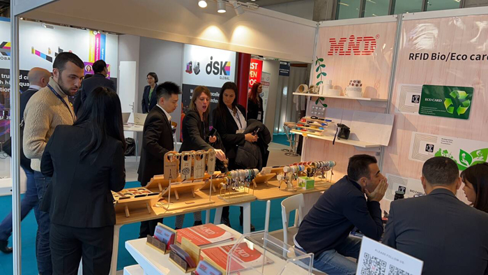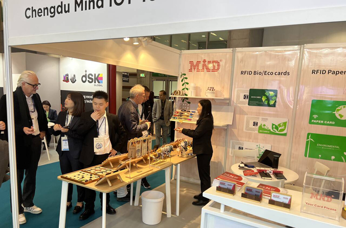 邁德此次亮相的是5.2 F088展臺,在展臺上,邁德精心布置了各類特色智能卡及電子標簽產品,包括木卡、環保卡、腕帶卡、戒指卡,手串卡等,這些產品不僅展示了邁德在智能卡領域的創新實力,也彰顯了中國制造的魅力。